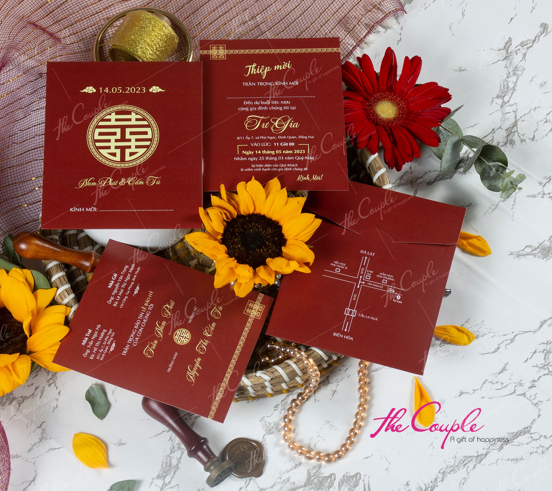 MĐB06 Thiệp Cưới Chữ Hỷ Tone Màu Nâu Đỏ - Thiệp Cưới Basic - Thiệp Cưới Truyền Thống