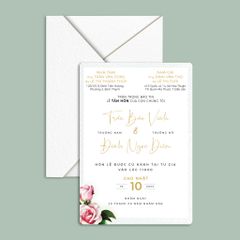 Chất liệu: Có thể lựa chọn in thiệp cưới trên Giấy tiêu chuẩn hoặc giấy mỹ thuật cao cấp