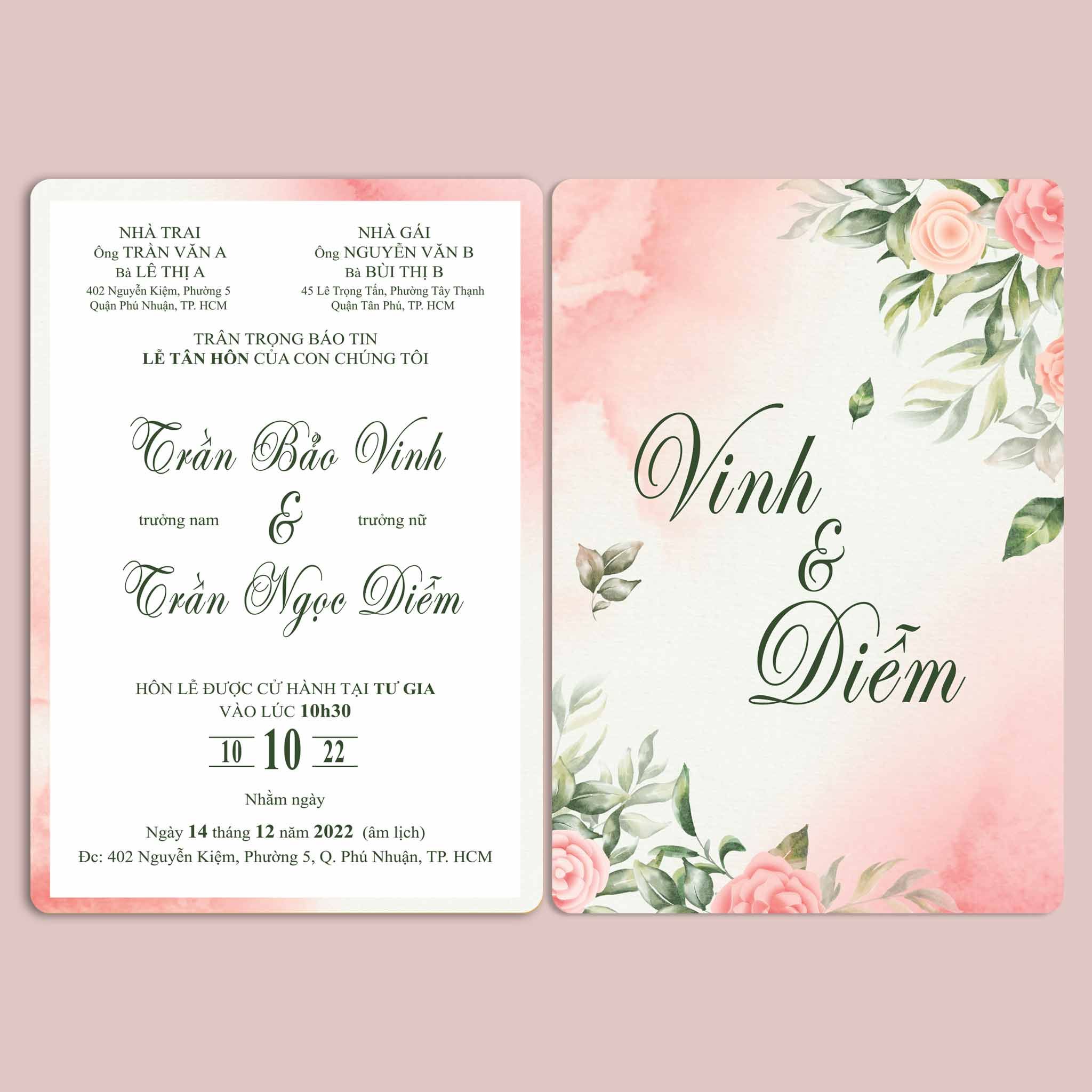 Chất liệu: Có thể lựa chọn in thiệp cưới trên Giấy tiêu chuẩn hoặc giấy mỹ thuật cao cấp