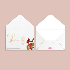 - Thiết kế và in thêm mặt trong phong bì thiệp cưới Họa tiết hoặc hình ảnh cô dâu chú rể... theo yêu cầu