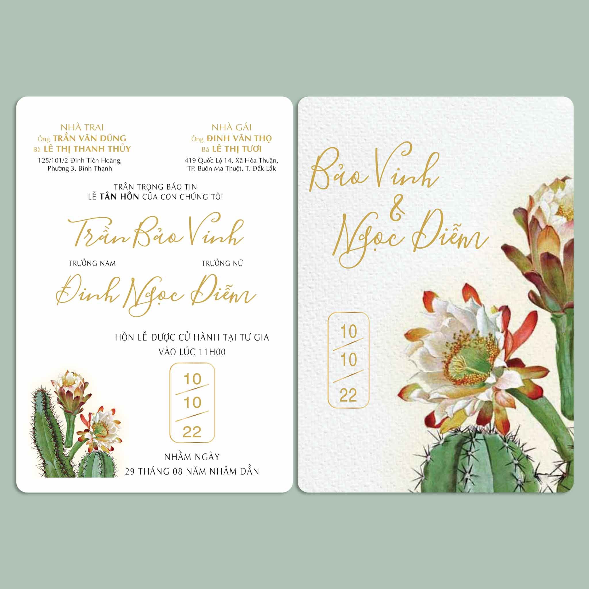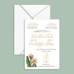 Chất liệu: Có thể lựa chọn in thiệp cưới trên Giấy tiêu chuẩn hoặc giấy mỹ thuật cao cấp