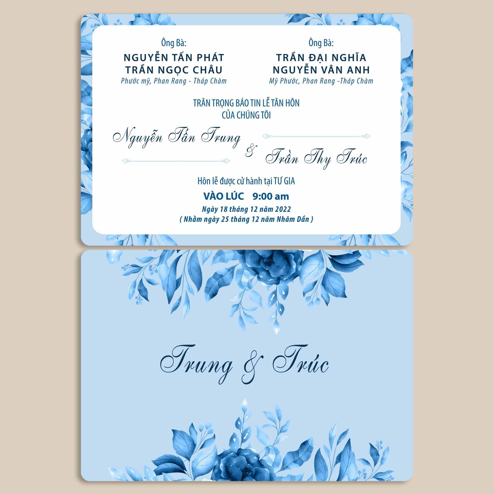 - Ruột: 12 cm x 17 cm; in 2 mặt – chất liệu Giấy tiêu chuẩn hoặc giấy mỹ thuật cao cấp