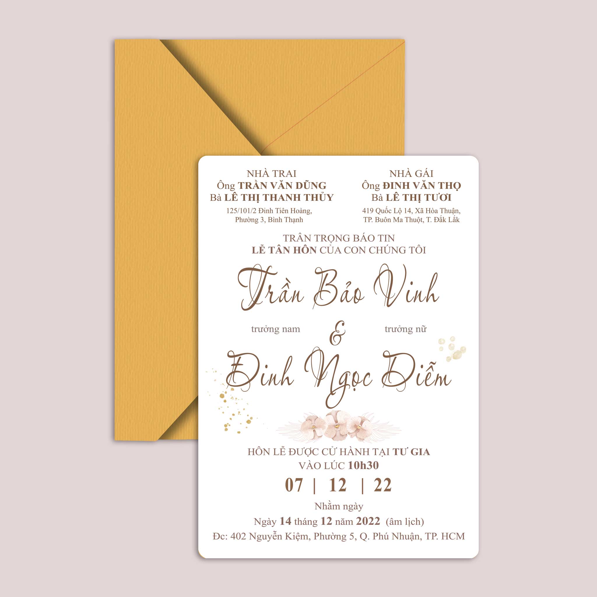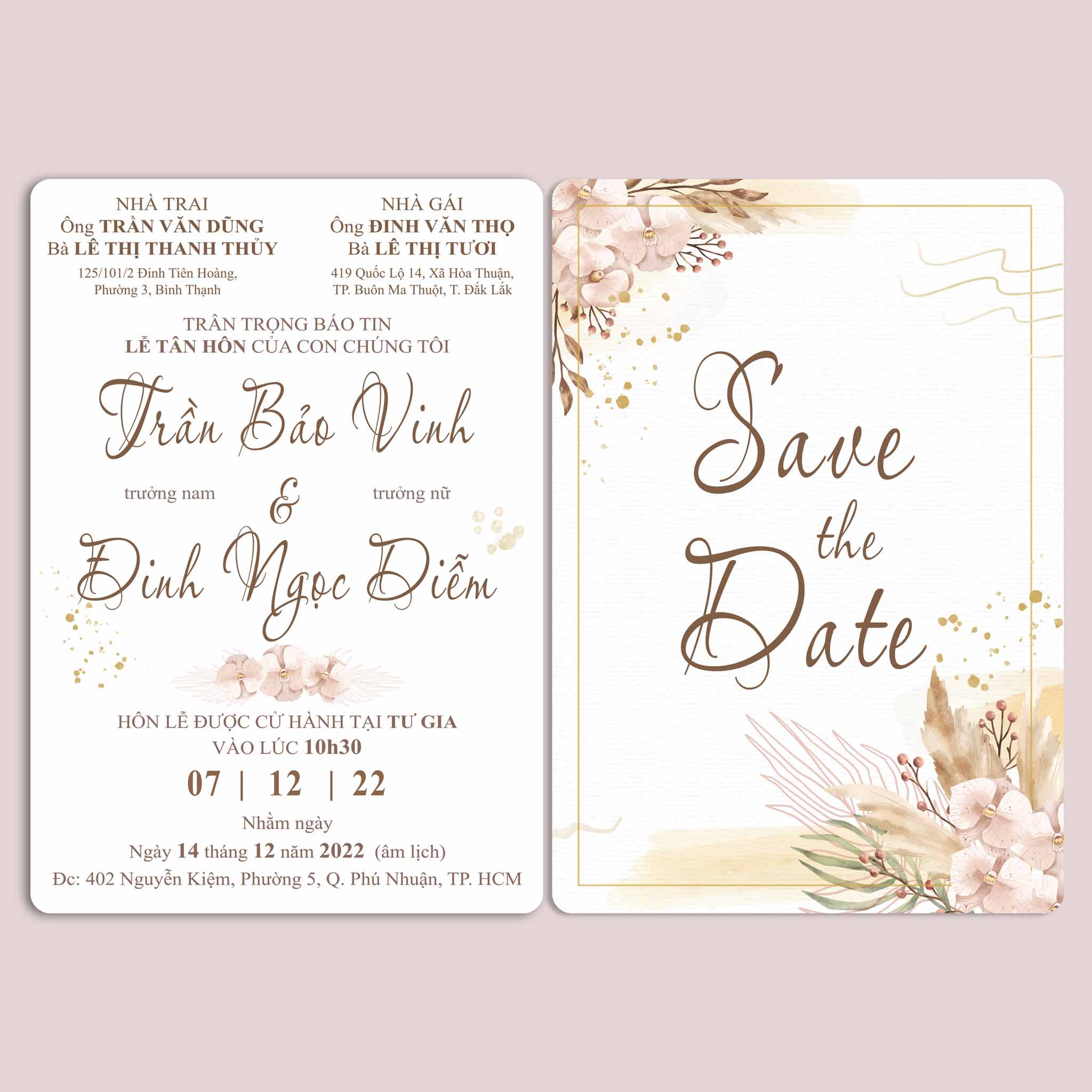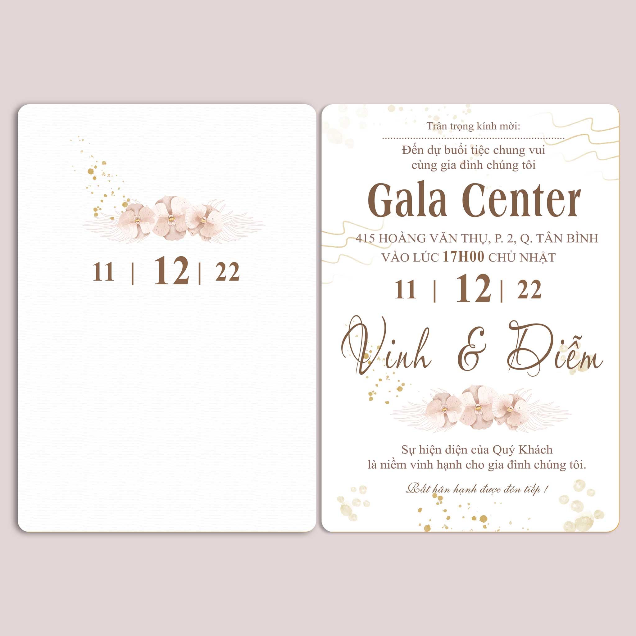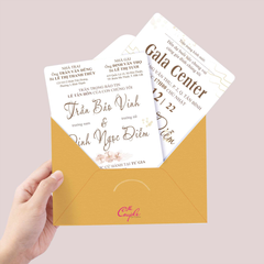 Chất liệu: Có thể lựa chọn in thiệp cưới trên Giấy tiêu chuẩn hoặc giấy mỹ thuật cao cấp